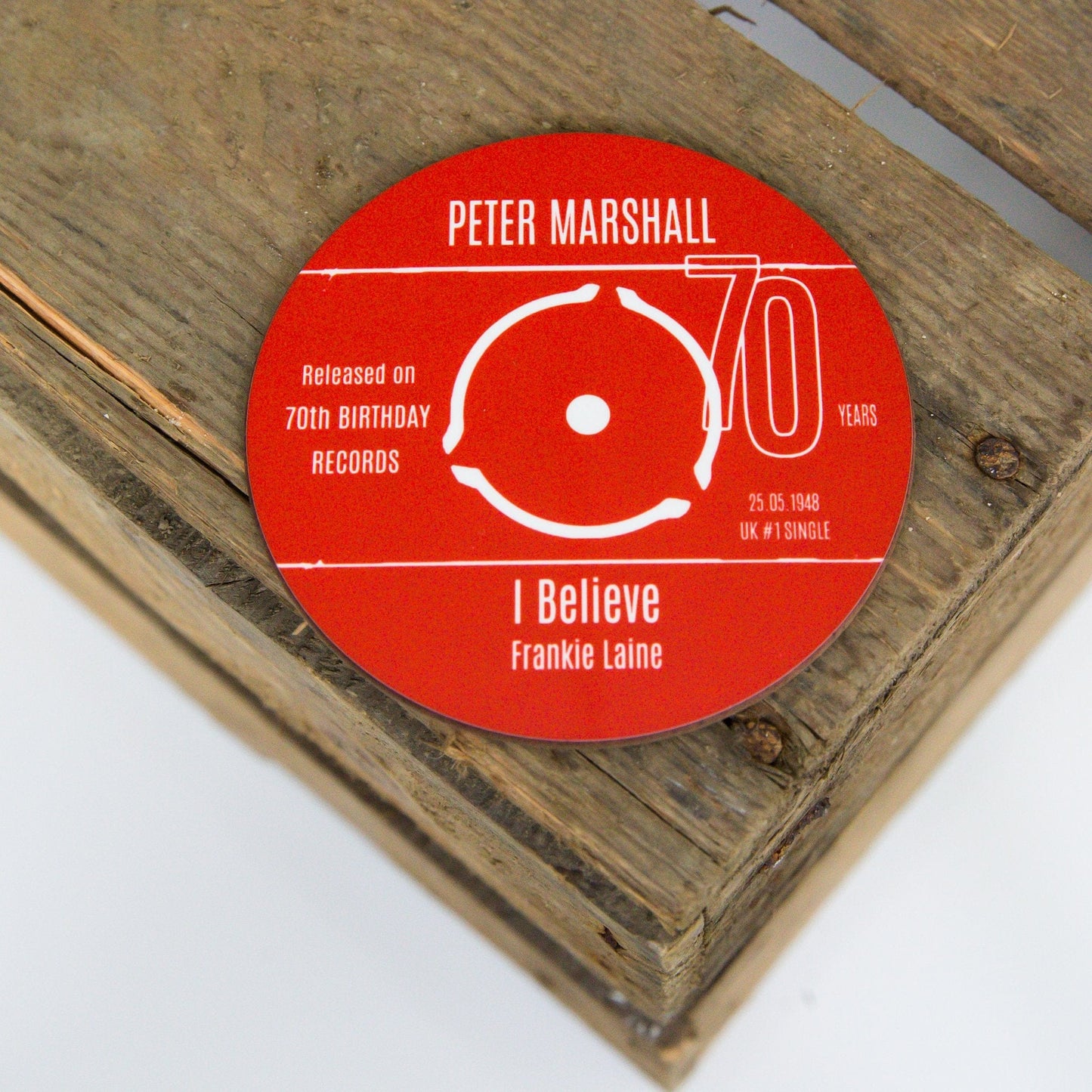 70th Birthday Greeting Card Coaster Personalised | #1 Day Born or Favourite Song