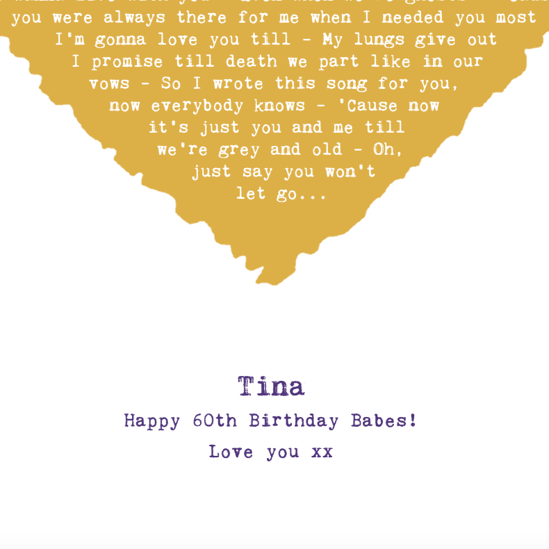 • Any song lyrics in the heart or alternatively a speech, wedding vows, poem or passage of your choice