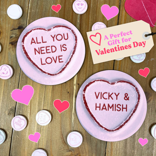 View full detailsShare the Love Surprise your sweetheart with these adorable personalised love heart coaster - a playful nod to the classic retro sweets we all kno...