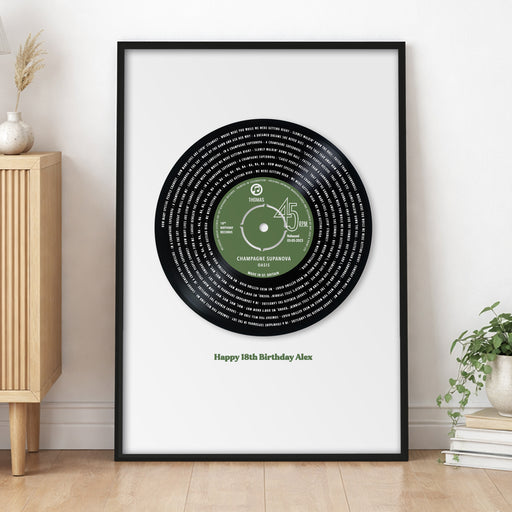 View full detailsA realistic vinyl record print with a personalised centre label — just like the real thing.Choose your song title + artist and add names, a date, ...