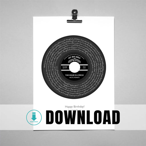 View full detailsPersonalised 45 RPM Vinyl Record Lyrics Print – Custom Song Words Wall Art- Digital download