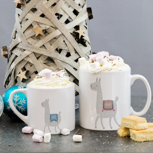 Llama Personalised Mug Set - Fun Mummy Daddy Baby Llama Drama Family Gift - Mama Papa Toddler Mug Set Christmas Eve Present