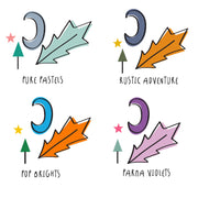 The motif bears a variety of adventure items such as tents, leaves, trees and the moon in stunning colours and has matching ‚Adventure Club text on each to make for a great twinning gift.