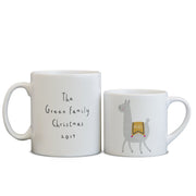 Each mug can have the personalised llama front and back or your family name or other message on the reverse ... llama drama family or not - time to saddle up and embrace the llama in all of us.