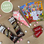 *Food items ship UK only. Non-UK orders receive an alternative freebie (e.g., puzzle pack/coaster/toy).
