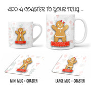 Personalised Gingerbread Mug & Coaster • Family Hot-Chocolate Cups • Kids Mini Mug • FREE Hot Choc Gift • Christmas Eve Box Filler