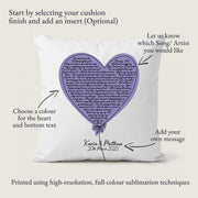 Personalised Heart Balloon Song Lyrics Cushion – Custom Love Song Gift