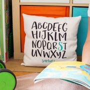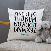 Monochrome Kids Bedroom Modern Nursery Accessory - A-Z Alphabet Cushion Print Personalised - New Baby Gift