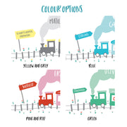 Custom New Baby Gift - Train Money Box Birth Announcement Personalised Name Date Time - For Modern Nursery