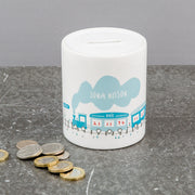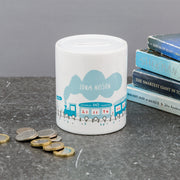 Choo-choo! Looking for a great gift for a new arrival or a unique way to announce a new addition to the family? Celebrate the start of a very special journey with our personalised train money box. This ceramic money box features a colourful train illustration, which incorporates baby's birth details to create a cute keepsake that'll look great in the nursery. Perfect as a new baby or christening present, this gift will be enjoyed for years to come and allow the recipient to save towards future fun and adventures.