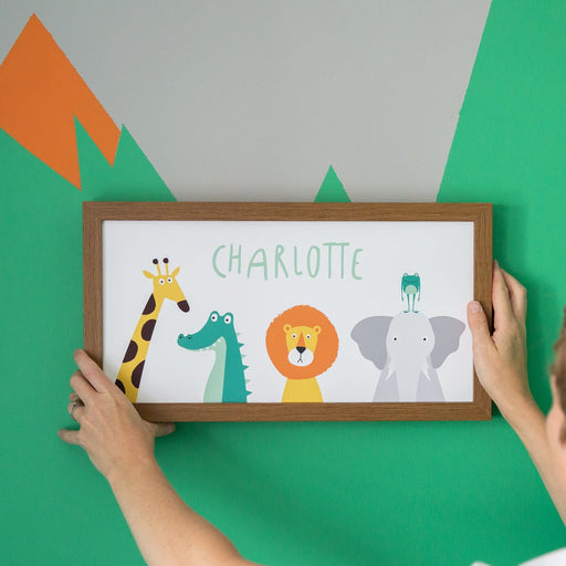 View full detailsModern Nursery Print - Jungle Animals Poster Personalised Lion Giraffe Elephant - Toddler Birthday