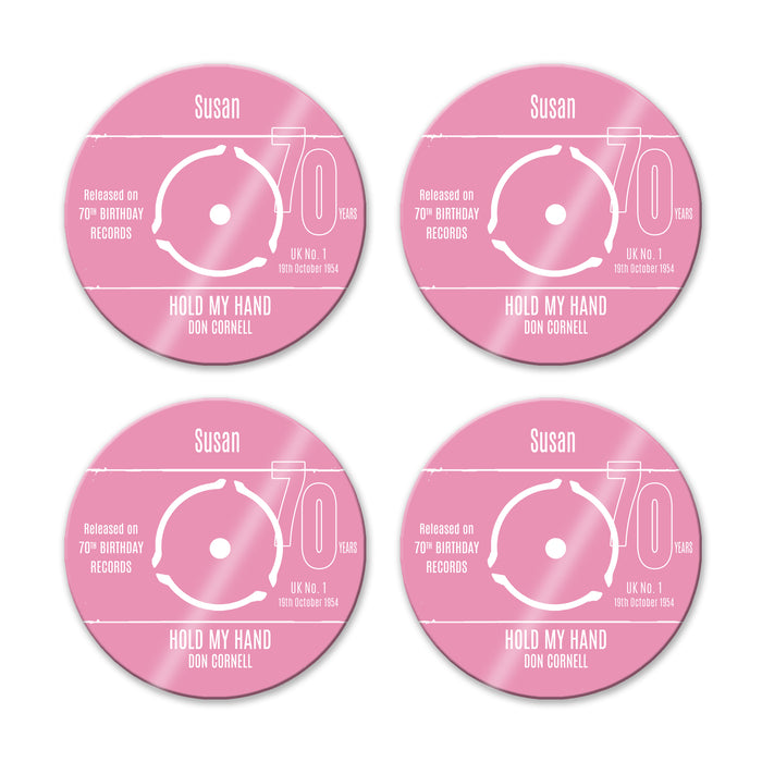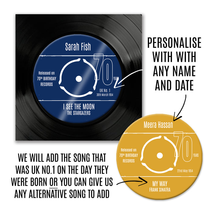 Personalised 70th Birthday Greetings Card Optional Coaster - With Number 1 Single Day Born Or Favourite Song