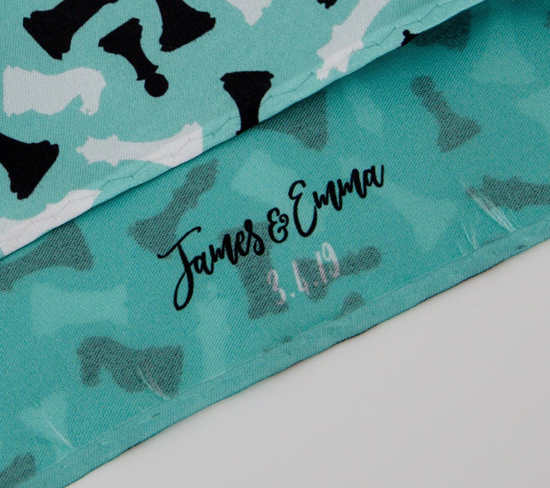 Going open collar? Add a sharp touch without feeling over-dressed. It’s checkmate with our chess-pieces pocket squares—easy to puff or fold into a regal three-point crown. This listing is for a Set of 4, perfect for groomsmen or stylish gifts. Choose contemporary colours and add names, initials or dates to the reverse for a subtle personalised finish.