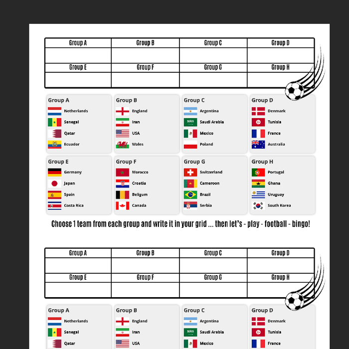 Featuring every team at the World Cup - just print it out and play along.