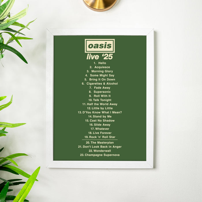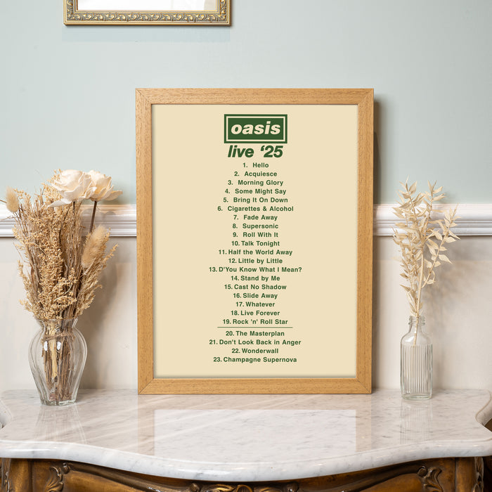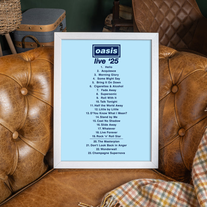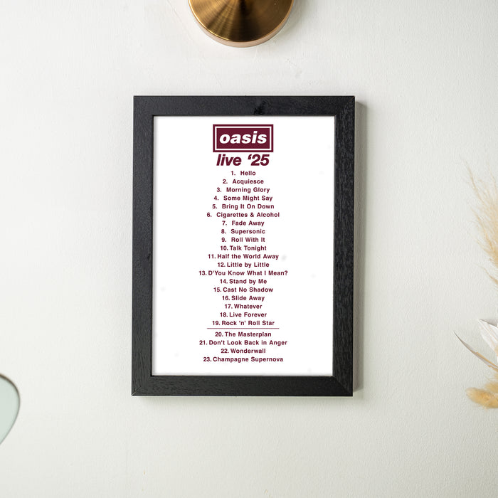 Oasis Live '25 Setlist Print – A4 or A3 Framed Wall Art | Music Poster | Fan Gift | Britpop Decor