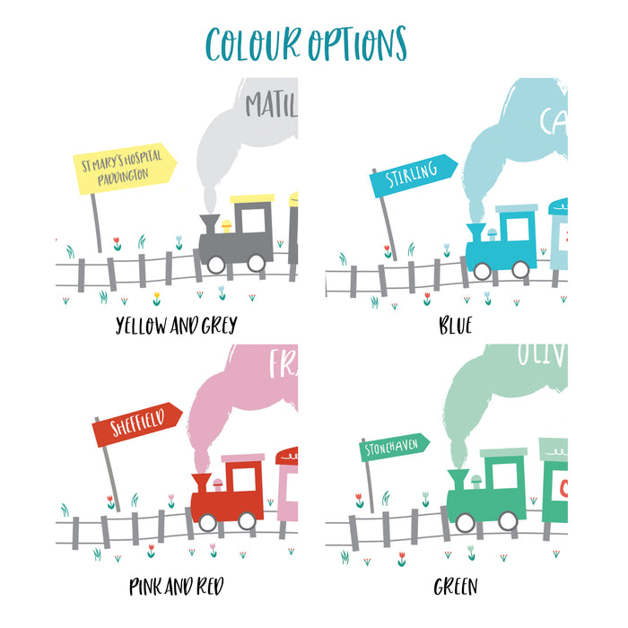 Want to help a new arrival feel totally at home? This animals on a train money box makes a lovely new baby or child's birthday gift. With a friendly bunch of travelling jungle animals drawn by our resident child's illustrator, Vicky, this colourful keepsake is a fun way to commemorate all those special birth details. Plus, it will help them save the pennies towards future fun too! Just let us know their details and we'll make sure it choo-choos its way to you.